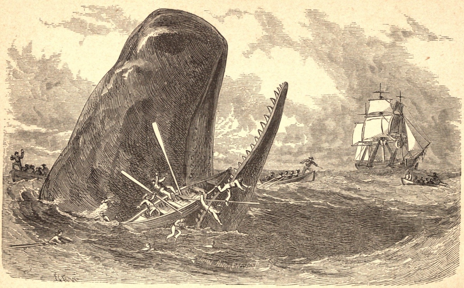 CHAPTER VII."CUTTING IN."The necessary operations on the new ship's rigging had somewhat encroached upon the progress of other duties, connected with the whaling gear, during the few days since we left home. The cutting pendants were to be got over the masthead, not yet having been sent aloft; the falls were new and wiry; but few cutting-spades rigged or ground, and the best part of the afternoon was consumed in getting all things in readiness for cutting; and, as there was every prospect of fine weather, it was determined not to hook on until the next morning. Boat's crew-watches were set, as is common when lying under short sail, boatsteerers being in charge of the deck by turns, each with his own boat's crew, thus making three, or in large ships, four watches. This was a grand occasion for yarning in the first watch, as every one was up, looking at the leviathan alongside, swashing with every heave of the sea, and tugging at the stout fluke chain as the rise of the ship brought a strain upon it; as though still instinct with life and impatient of his bonds. "Well, Jeff," said the ebony doctor, as he stood leaning over the rail after having finished his work for the night, "how much ile you tink dat whale make?" |